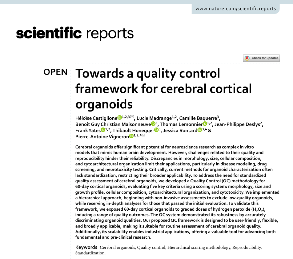Article publié sur le contrôle qualité des organoïdes cérébraux